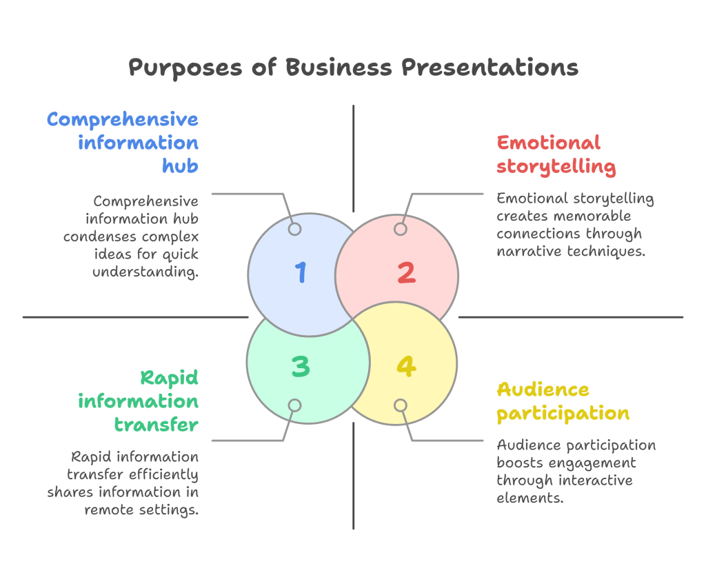 Business presentations are sophisticated communication tools that require strategic thinking, creative design, and audience understanding. By focusing on comprehensive information, emotional engagement, and active involvement, you can transform your presentations from mere slide decks to powerful business assets that drive results and elevate your professional impact. Mastering the art of compelling communication through presentations is an investment that will pay dividends throughout your career.