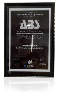 Another Landmark Achieved!! Yet another landmark achieved, after winning Brand Achiever award in 2015, we won ABS award for Best Multimedia Company in the starting of 2016 in a gracious function held in Hotel Radisson. Award was presented by Ms Amisha Patel & received by senior members of our team.
