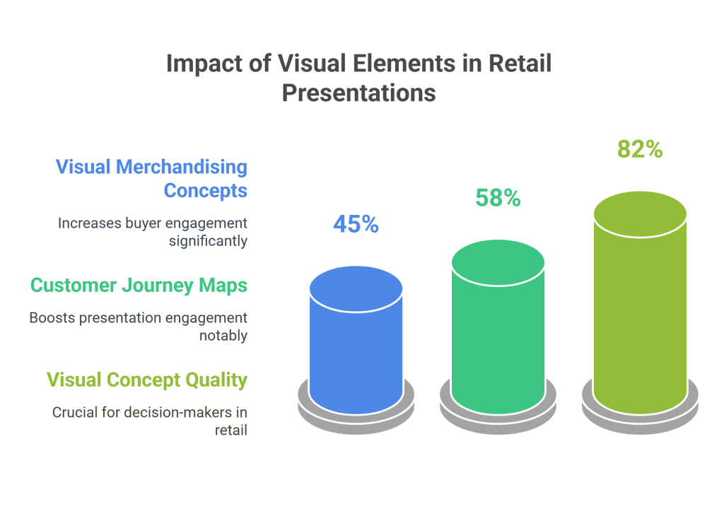 - Retail buyers spend 45% more time on slides with visual merchandising concepts