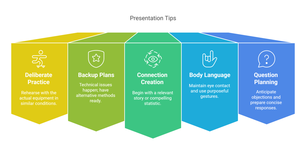 - Plan for questions: Anticipate objections and prepare concise responses
