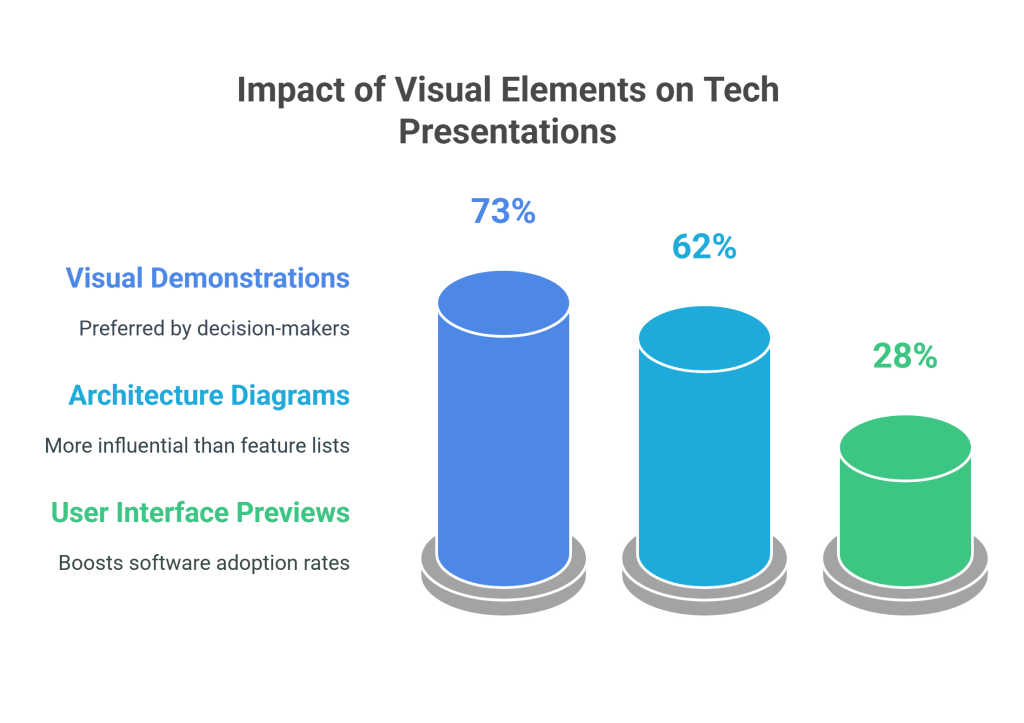 - 73% of technical decision-makers prefer presentations with visual demonstrations