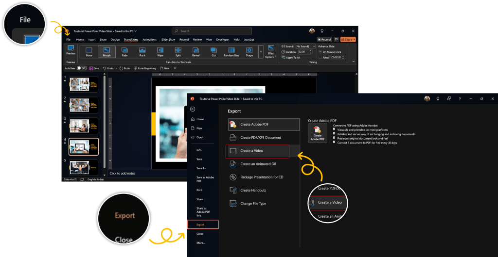 - Click Create Video, choose a save location, and PowerPoint will export your presentation as an MP4 file.
