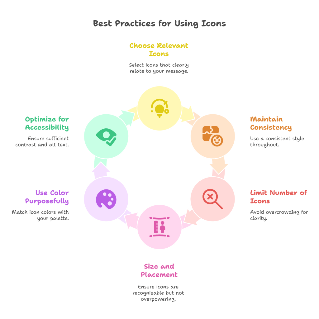 Limit Number of Icons per Slide: Avoid overcrowding; focus on clarity.