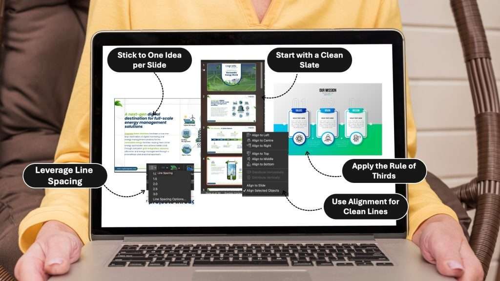 - Start with a Clean Slate: Use minimalist templates and avoid unnecessary design elements that can clutter the slide.